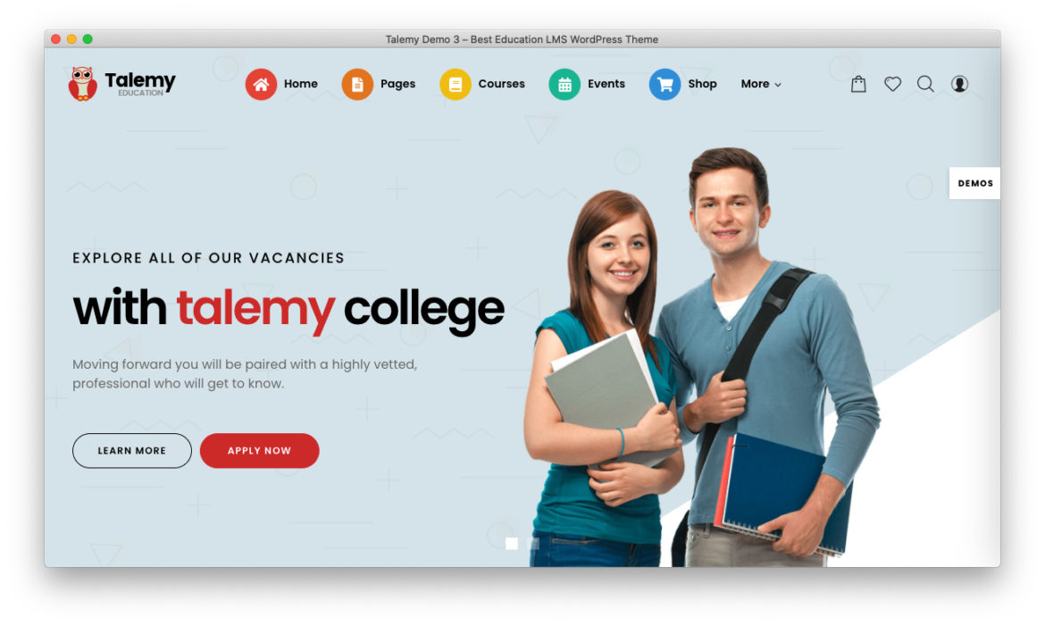 Talemyは、教育機関やコースをオンラインで公開したい個人向けのLearnDashhが使えるテーマです。